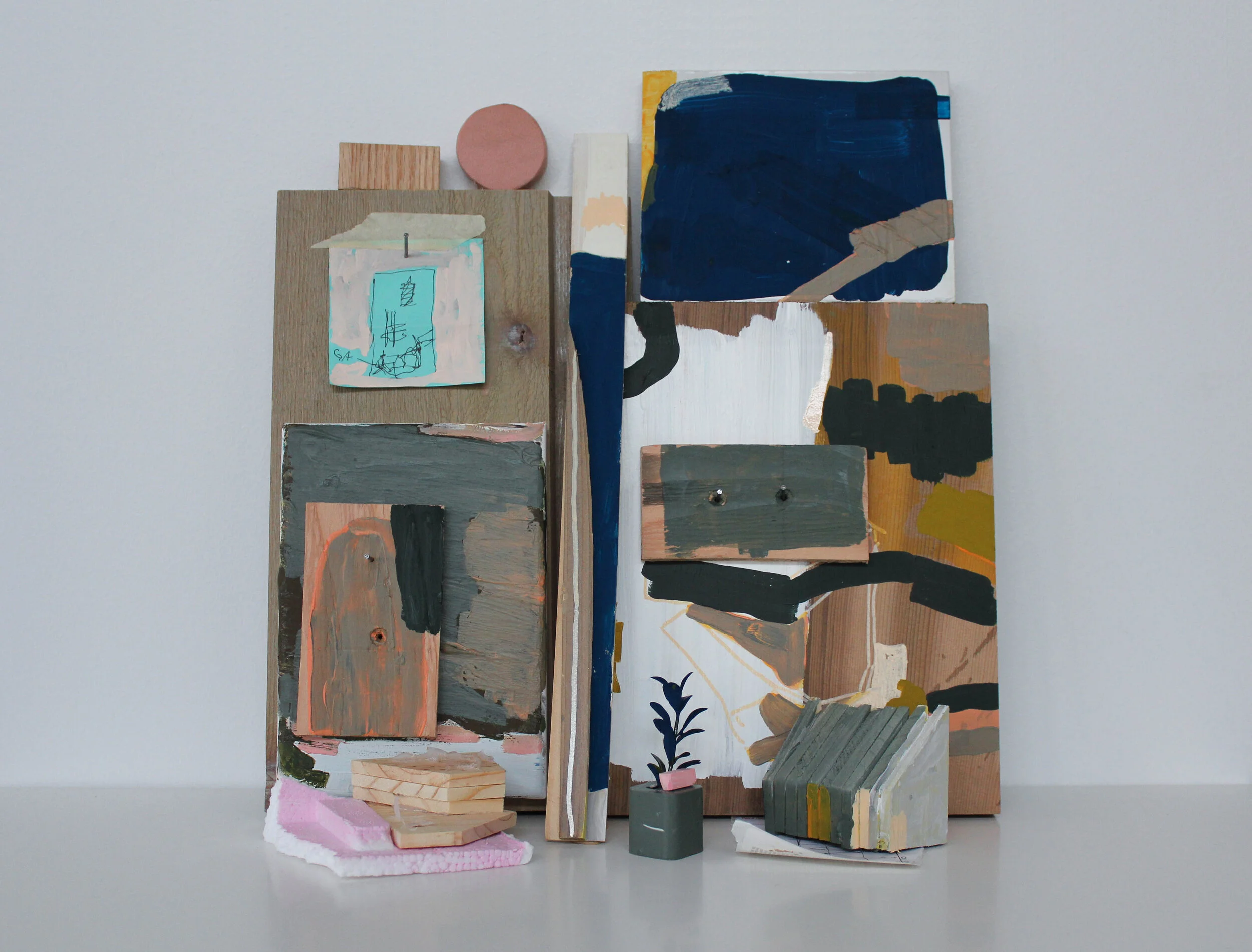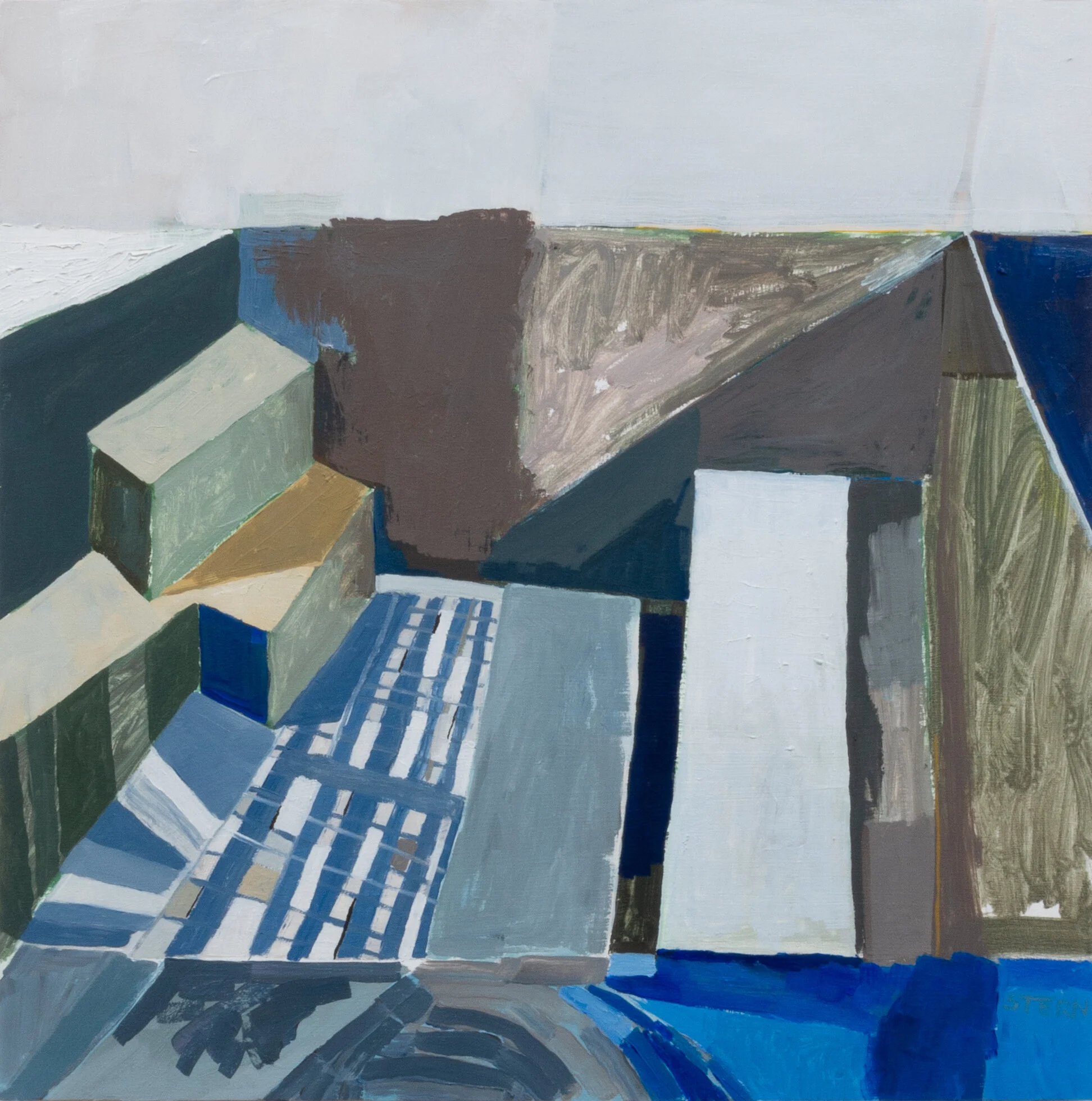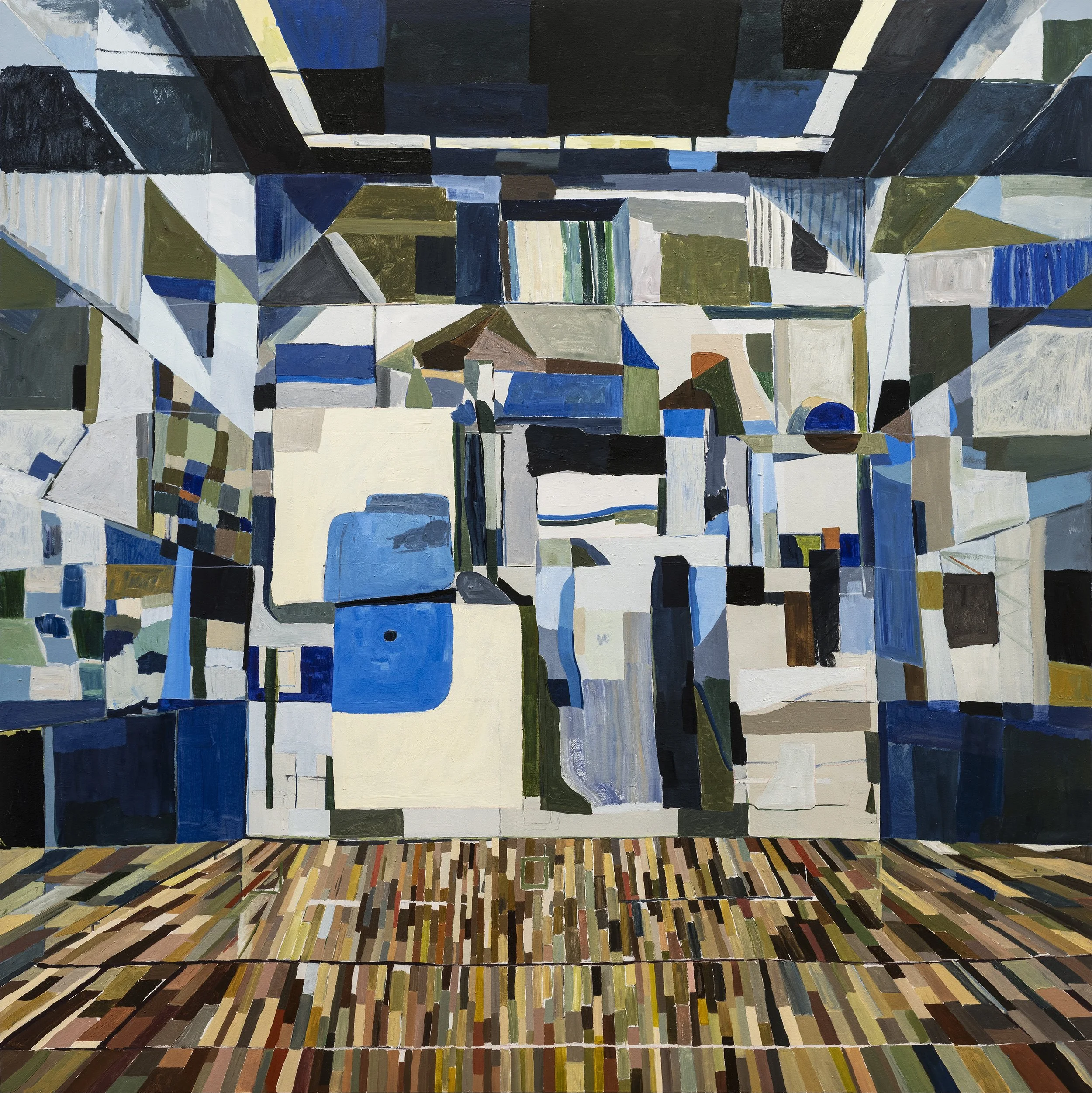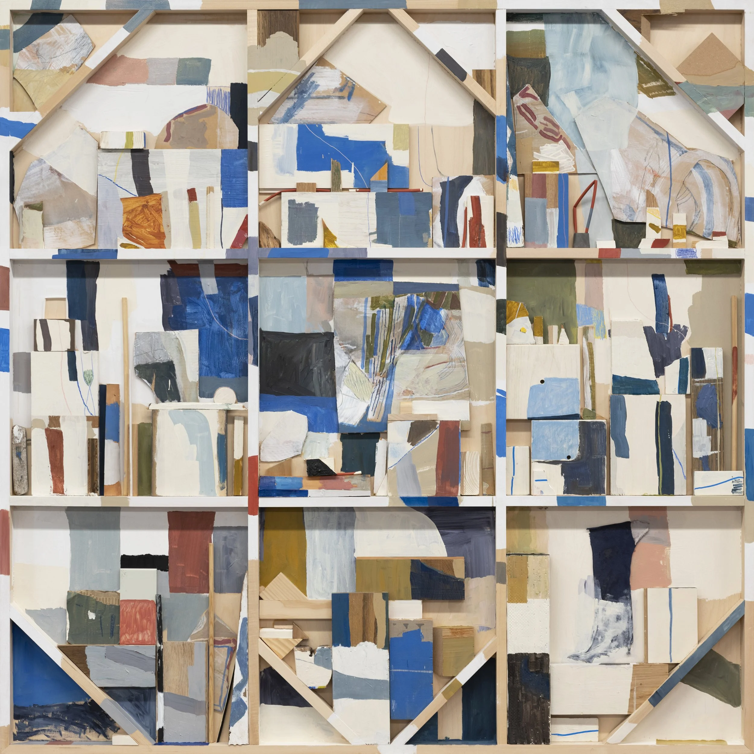NEST (the air is good), Found wood, tile, and cardboard painted on backside of cradled panel, 60 x 60.