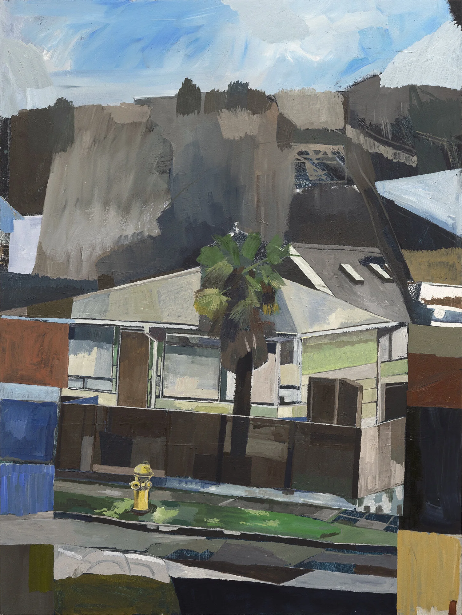 Los Angeles, Oil, spray paint, acrylic and colored pencil on panel, 45 x 50. 2020.